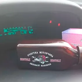 1. Флакон на фоне паказаний пробега.
