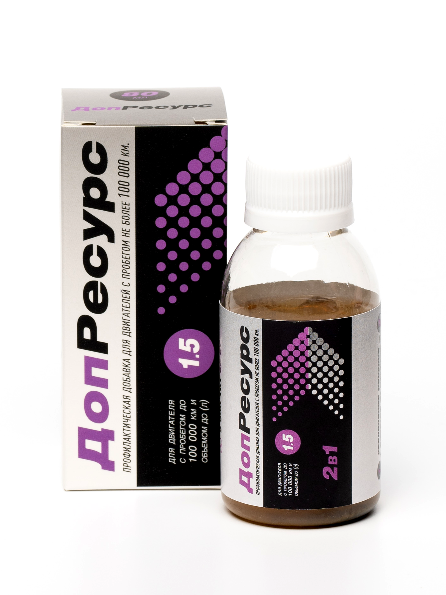 Добавка Доп.Ресурс предназначена для увеличения ресурса исправного двигателя легкового автомобиля с двигателем до 1,5 л и с пробегом до 100 000 км.