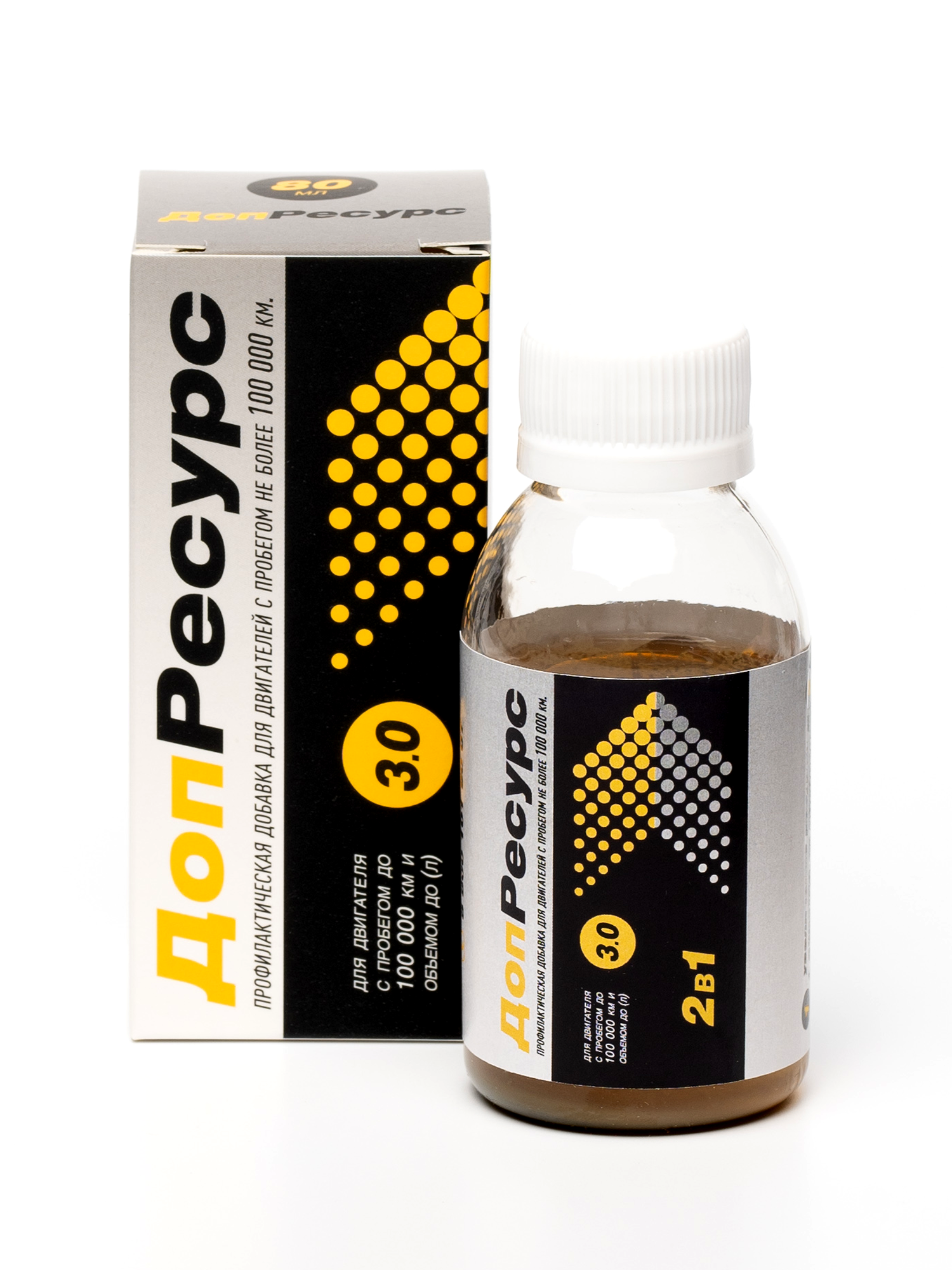 Добавка Доп.Ресурс предназначена для увеличения ресурса исправного двигателя легкового автомобиля с двигателем до 3,0 л и с пробегом до 100 000 км.